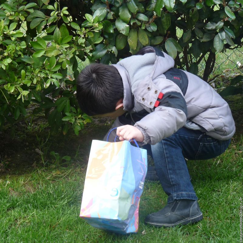 Aujourd’hui c’est le lundi de Pâques, les cloches passent dans les jardins distribuer des chocolats pour les enfants sages. Apparemment ton grand frère a été sage car elles sont passées.